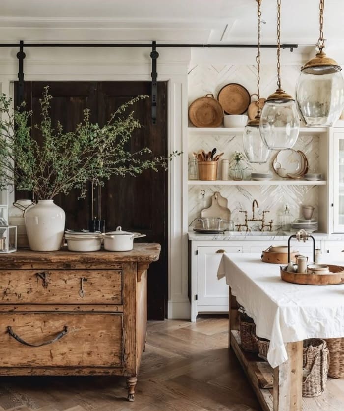 This look typically incorporates natural materials, such as wood and metal, soft neutral colors, and items that feel a little vintage or handmade.