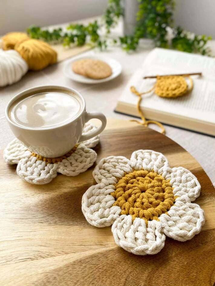 These crochet daisy coasters feel warm and cheerful, and they’re perfect for everyday use. The chunky petals and textured center give them a cozy, handmade look while still feeling neat and polished. This is a great beginner-friendly project that uses simple stitches and works up quickly, making it ideal for gifts or home décor.