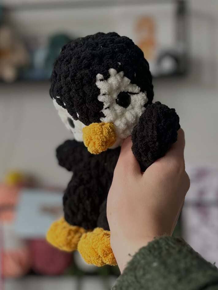 This little crochet penguin is one of those projects that instantly makes people smile. The chunky yarn gives it a soft, squishy feel, while the simple color blocks keep it clean and polished. With its rounded head, tiny wings, and bright beak, it feels playful, cozy, and beginner-friendly, with no extra details.