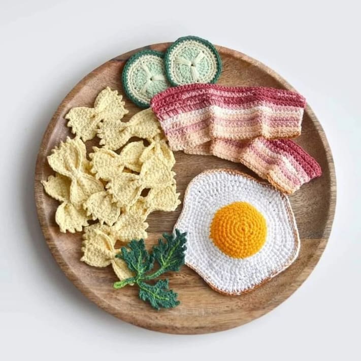 This crochet breakfast set is playful, creative, and full of charming details that make it feel fun and lighthearted. Each piece uses simple shapes, soft colors, and basic stitches, making it approachable for beginners. It’s perfect for pretend play, kitchen décor, or a cute handmade gift that feels cheerful and unique.