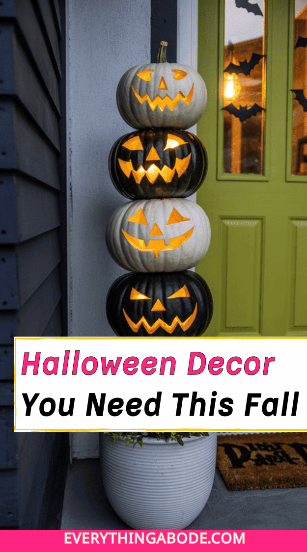 If you love a classic look, black-and-orange decor with pumpkins and bats always works. If you want something softer, go with cozy lighting, warm fall textures, and a few playful accents.