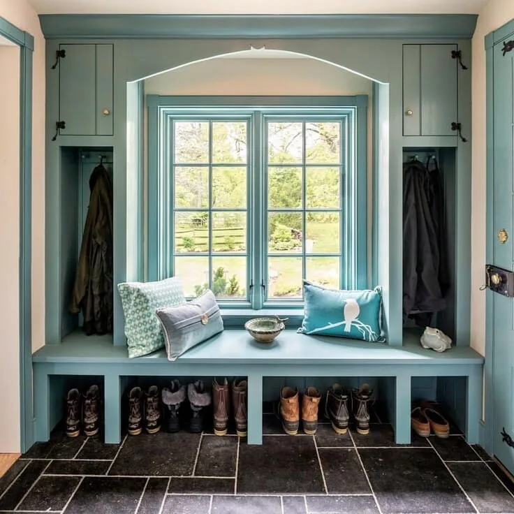 Photo by @deringhall on Instagram. This blue color is a great example of a warm, mudroom farmhouse feel!