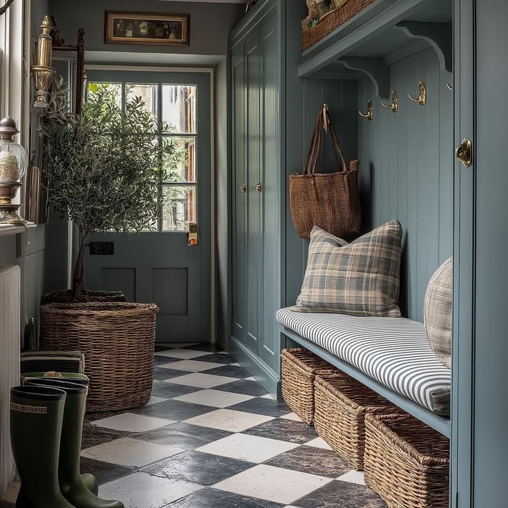 Give every item a clear home. When the coat goes on that hook, the dog gear goes in that basket, and the keys go in that tray, the room organizes itself without you even thinking about it.