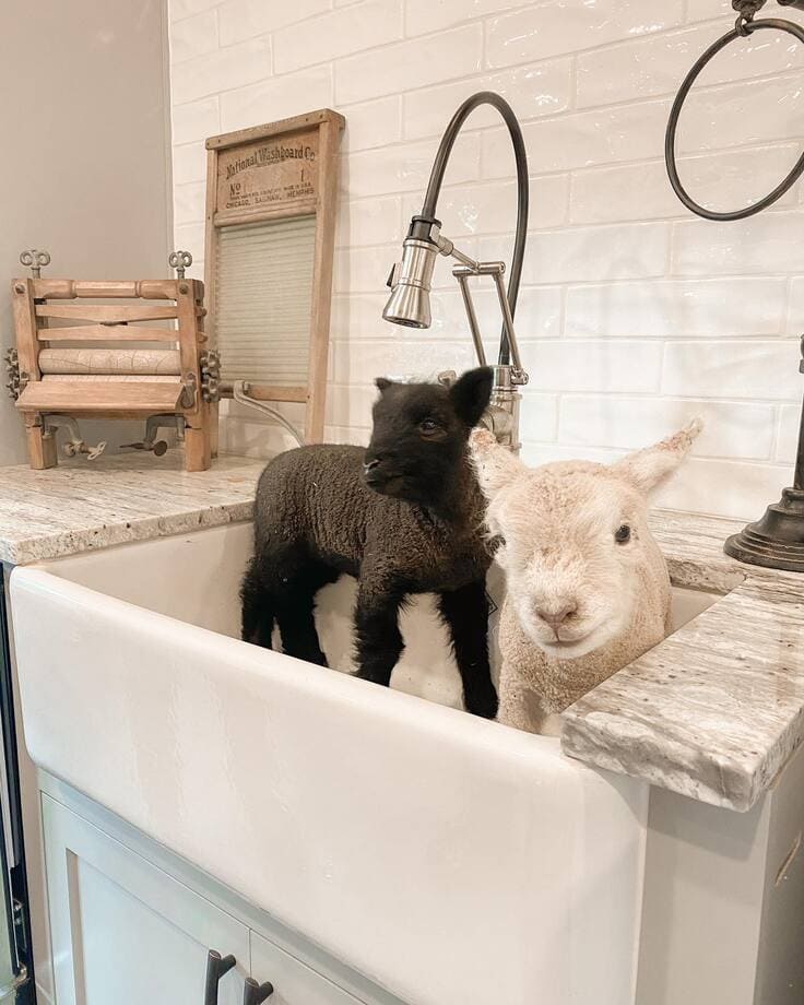 Photo by @poppysfarmstead on Instagram. If you are lucky enough to have baby goats, a good farmhouse sink is also a great idea!