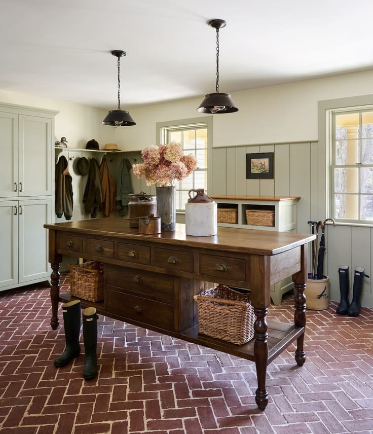 Design by @jamiekeskindesign. Photo by @k_j_caldwell on Instagram. Good, hardy flooring, as seen in this design, is essential for a mudroom!