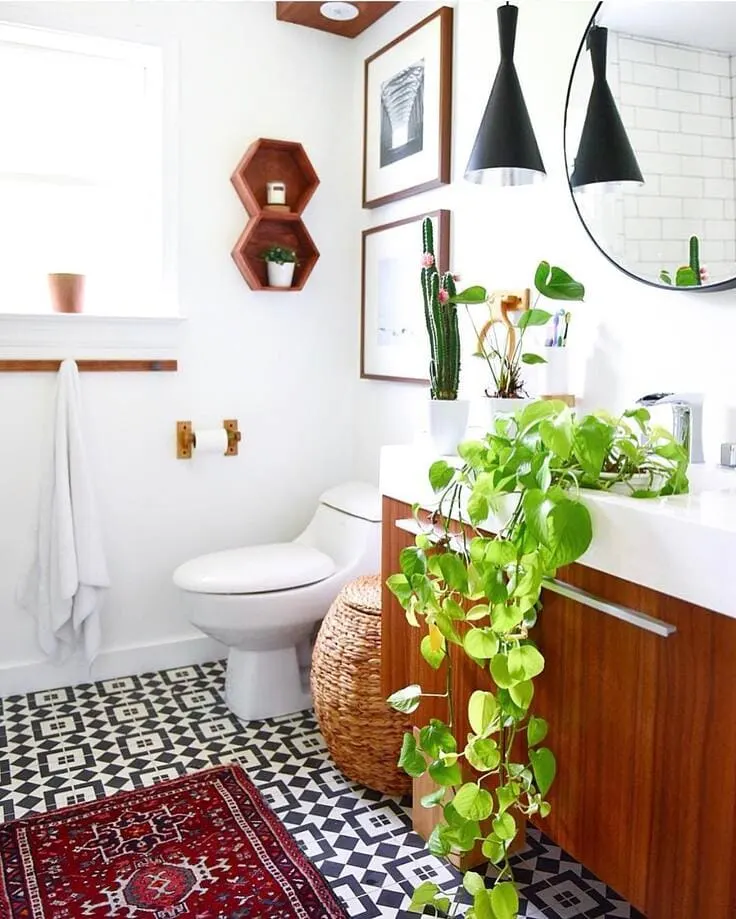 Even if you don’t have a green thumb, a pothos, snake plant, or peace lily will thrive in the humid bathroom environment.