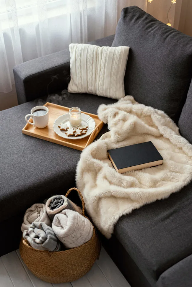 Quick upgrade: pick one “comfort layer” you always go for (blanket, hoodie, fuzzy socks) and style it intentionally by folding or draping it neatly.